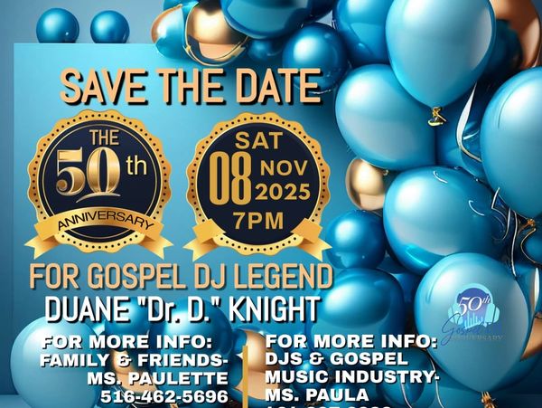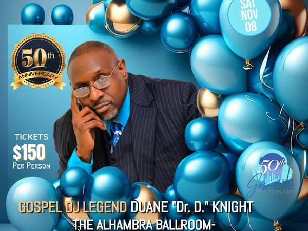 SAVE THE DATE AND COME CELEBRATE!!! We are hosting an event, and we'd love to see you there. Join us for The 50th Anniversary Celebration for the Original Gospel DJ Legend Duane "Dr. D" Knight on Nov. 8th, 2025 at 6pm at the Alhambra Ballroom in Harlem.
